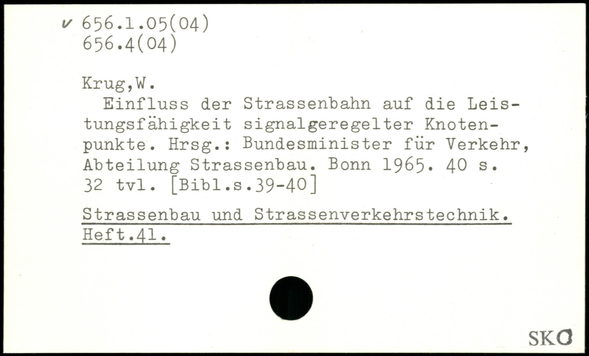 Einfluss der Strassenbahn auf die Leistungsfähigkeit signalgeregelter Knotenpunkte. Hrsg.: Bundesminister für Verkehr, Abteilung Strassenbau. Bonn 1965