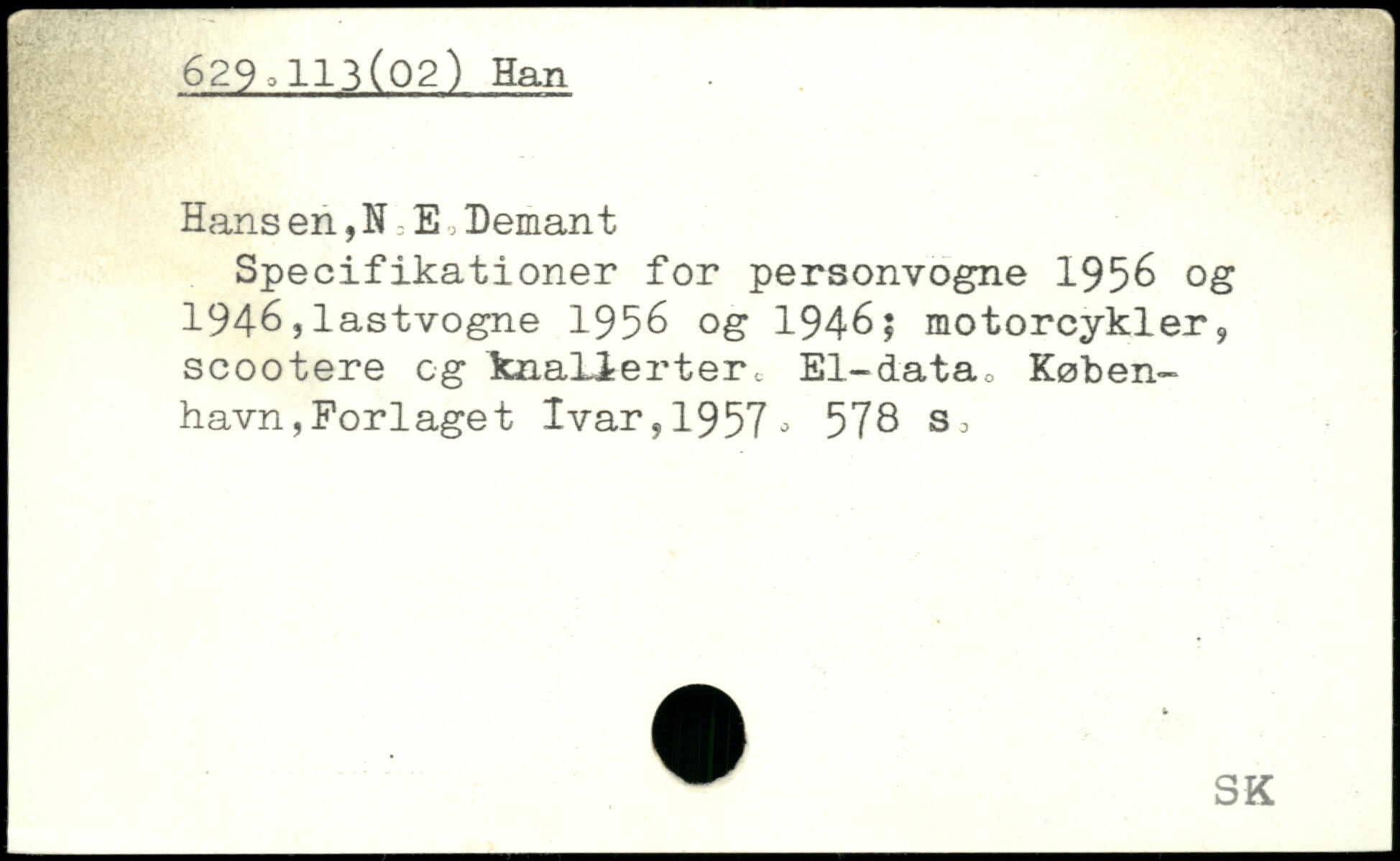Hans en,N E Deman t Specifikationer for personvogne 1956 og 1946,lastvogne 1956 og 1946; motorcykler, scootere cg knallerter.