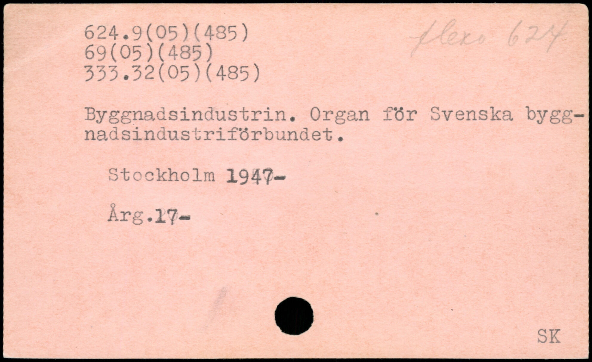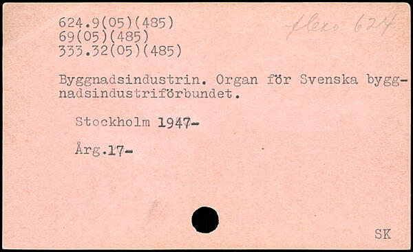 Byggnadsindustrin. Organ för Svenska byggnadsindustriförbundet. Stockholm 194?- Årg.17-