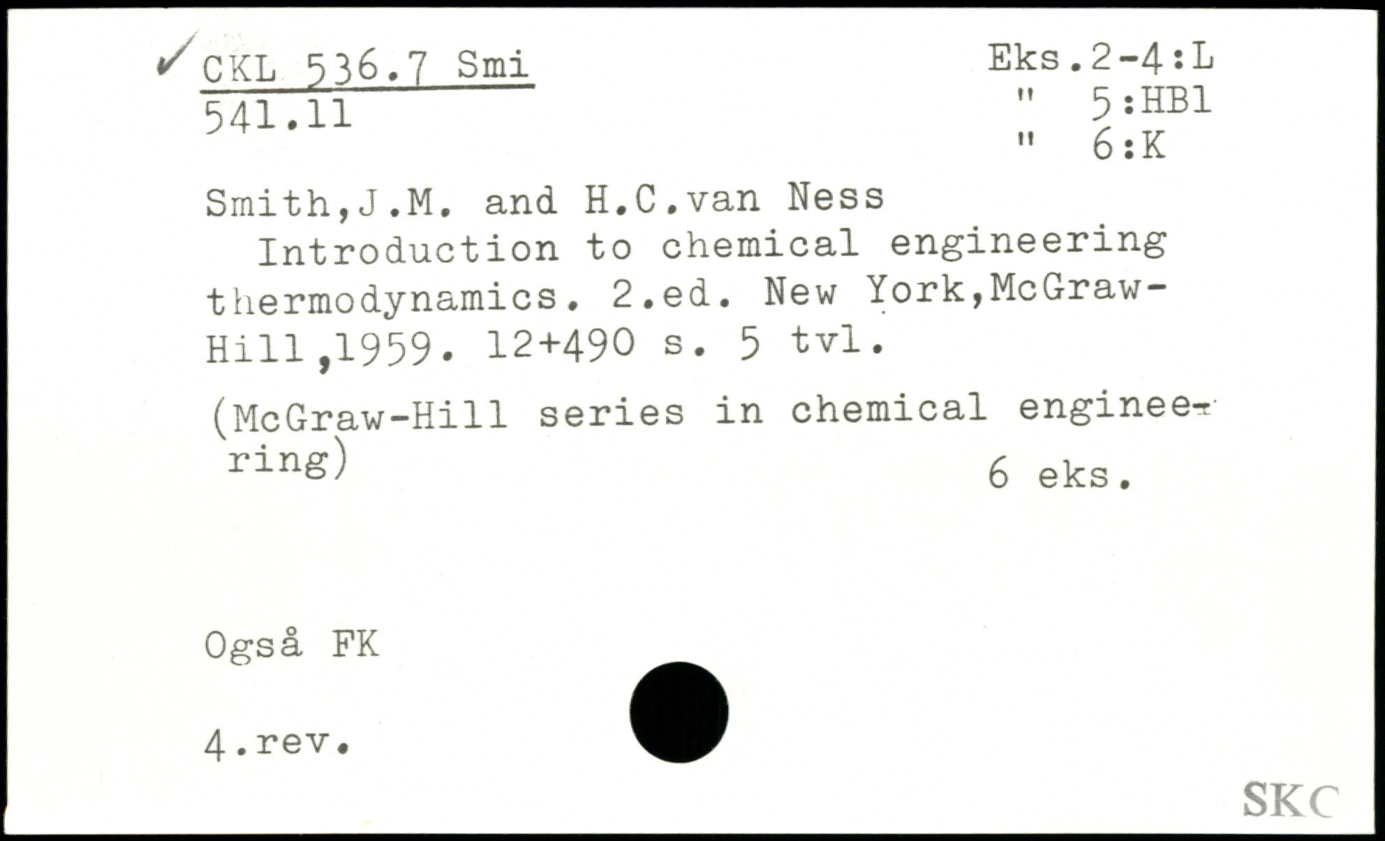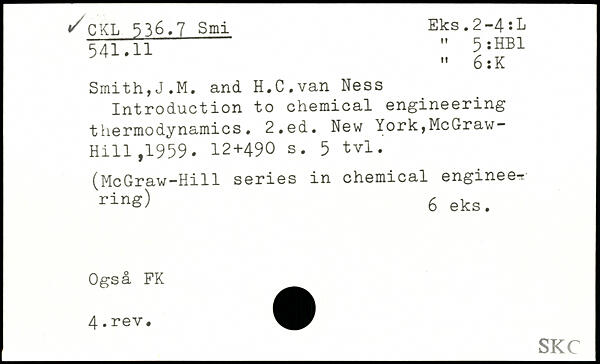 Smith,J.M. and H.C.van Ness Introduction to chemical engineering thermodynamics.