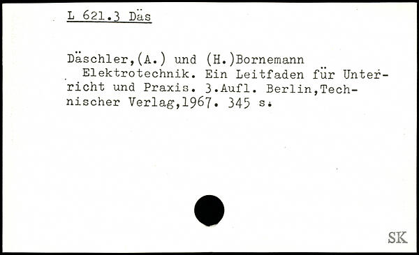 Daschier,(A.) und (H.)Bornemann Elektrotechnik. Ein Leitfaden für Unterricht und Praxis.