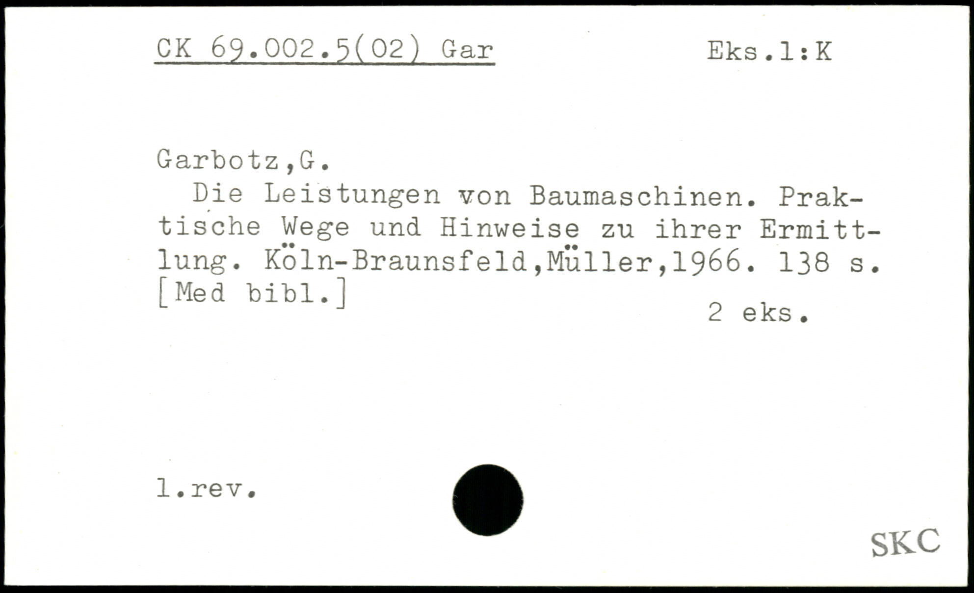 Die Leistungen von Baumaschinen. Praktische Wege und Hinweise zu ihrer Ermittlung. KÖln-Braunsfeld,MÜller,1966.