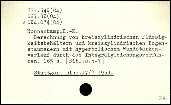 Berechnung von kreiszylindrischen Fliissig-keitsbehältern und kreiszylindrischen Bogenstaumauern mit hyperbolischem Wandstärkenverlauf durch das Integralgleichungsverfähren.