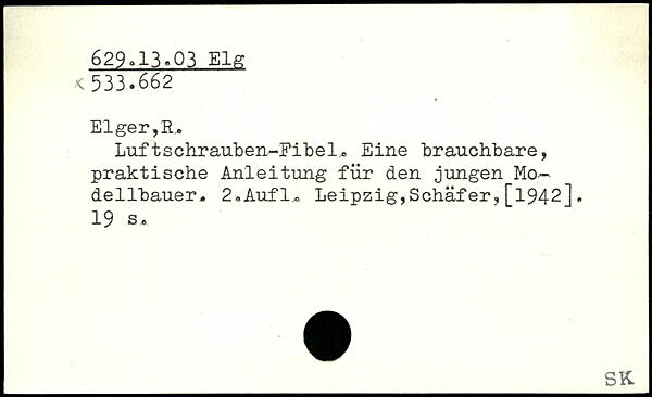Elger,R.. Luftschrauben-Fibel. Eine brauchbare, praktische Anleitung für den jungen Mo— dellbauer.