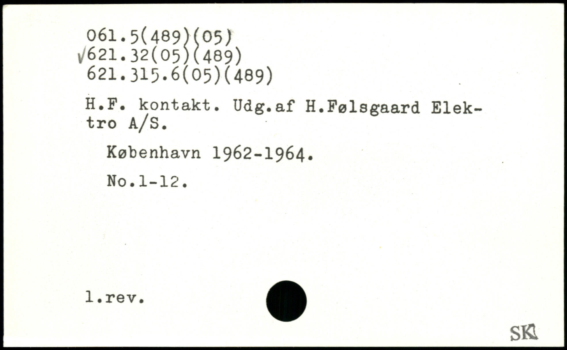 H.F. kontakt. Udg.af H.Følsgaard Elektro A/S.