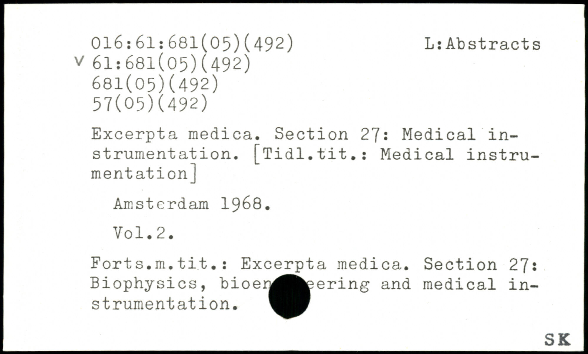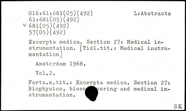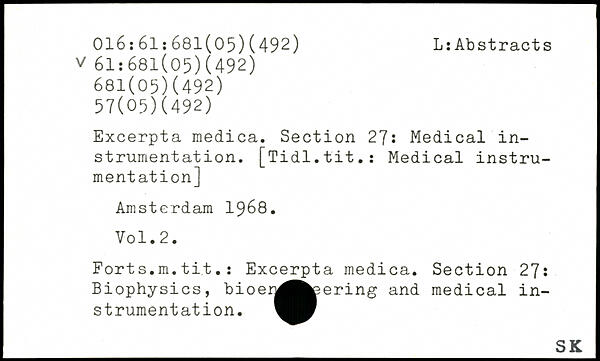 Excerpta medica. Section 27: Medical instrumentation. [Tidl.tit.s Medical instrumentation] Amsterdam 1968.