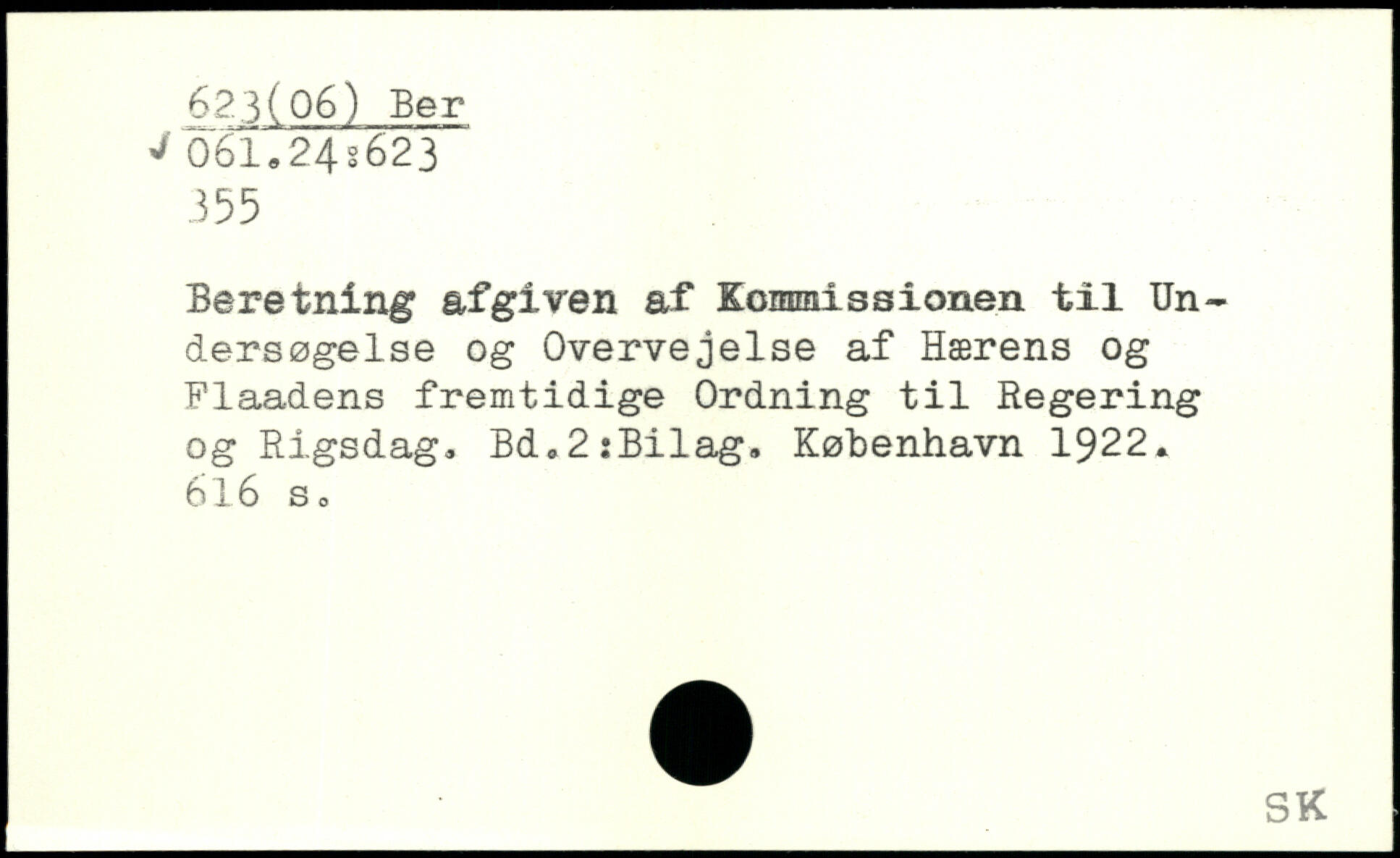Beretning afgiven af Eoimnissionen til Undersøgelse og Overvejelse af Hærens og Flaadens fremtidige Ordning til Regering og Rigsdag.