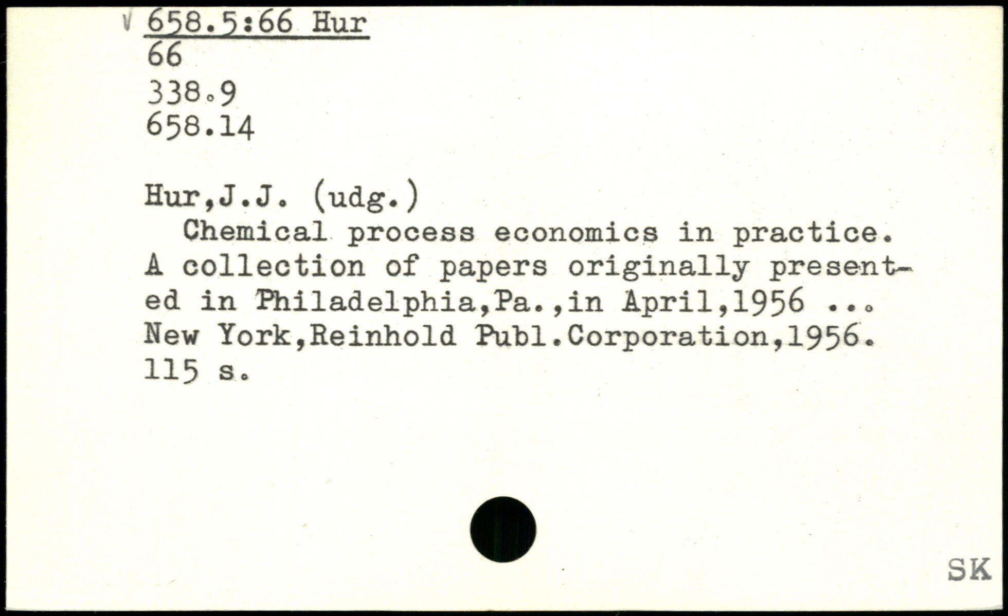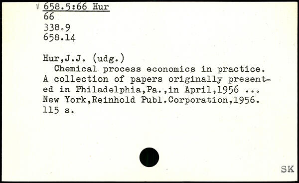 Chemical process economics in practice. A collection of papers originally presented in Philadelphia,Pa.,in April,1956 ... New York,Reinhold Publ.Corporation,1956.
