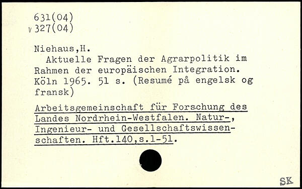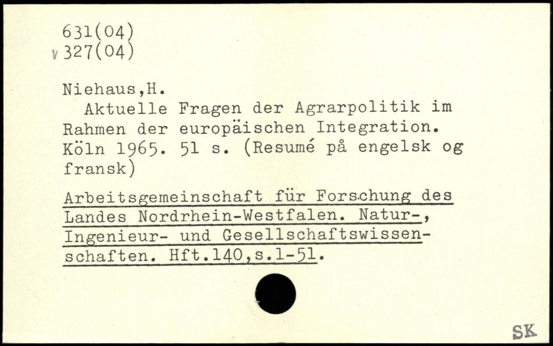 Aktuelle Fragen der Agrarpolitik im Rahmen der europäischen Integration.