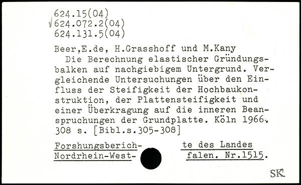 Die Berechnung elastischer Gründungsbalken auf nachgiebigem Untergrund. Ver-; gleichende Untersuchungen über den Ein fluss der Steifigkeit der Hochbaukonstruktion, der Plattensteifigkeit und einer Überkragung auf die inneren Beanspruchungen der Grundplatte.