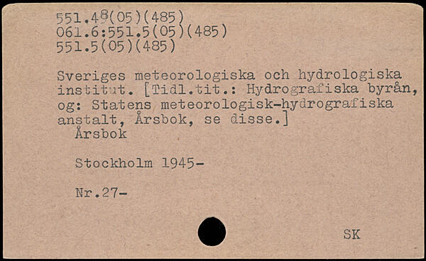 Sveriges meteorologiska och hydrologiska institut, [iidl.tit.: Hydrografiska byrån, og: Statens meteorologisk-hydrografiska anstalt, Årsbok, se disse.] Årsbok