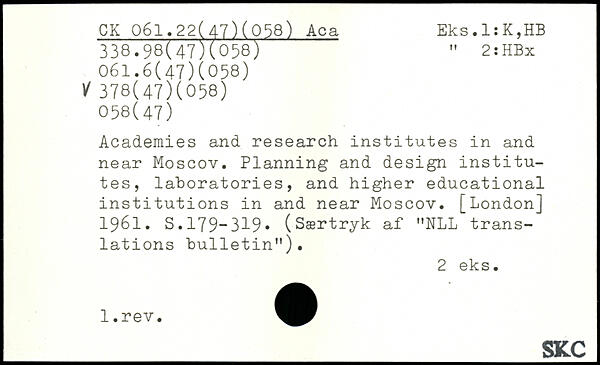 Academies and research institutes in and near Moscov. Planning and design institutes, laboratories, and higher educational institutions in and near Moscov.