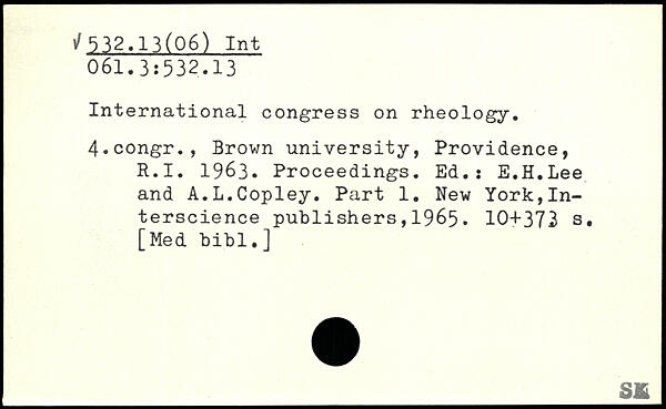 International congress on rheology. 4-congr., Brown university, Providence, R.I. 1963. Proceedings. Ed.: E.H.Lee and A.L.Copley. Part 1.