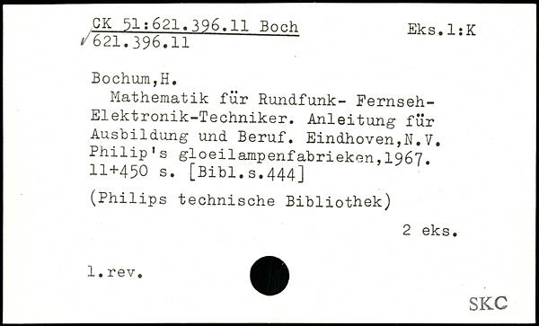 Mathematik für Rundfunk- Fernseh-Elektronik-Techniker. Anleitung für Ausbildung und Beruf. Eindhoven,N.V. Philip , s gloeilampenfabrieken,1967.