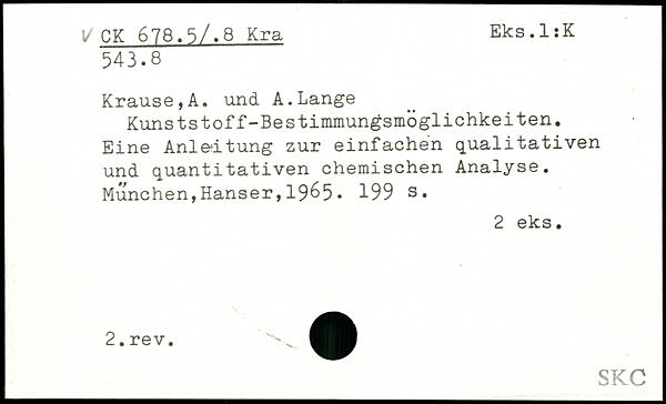 Kunststoff-Bestimmungsmöglichkeiten. Eine Anleitung zur einfachen qualitativen und quantitativen chemischen Analyse.
