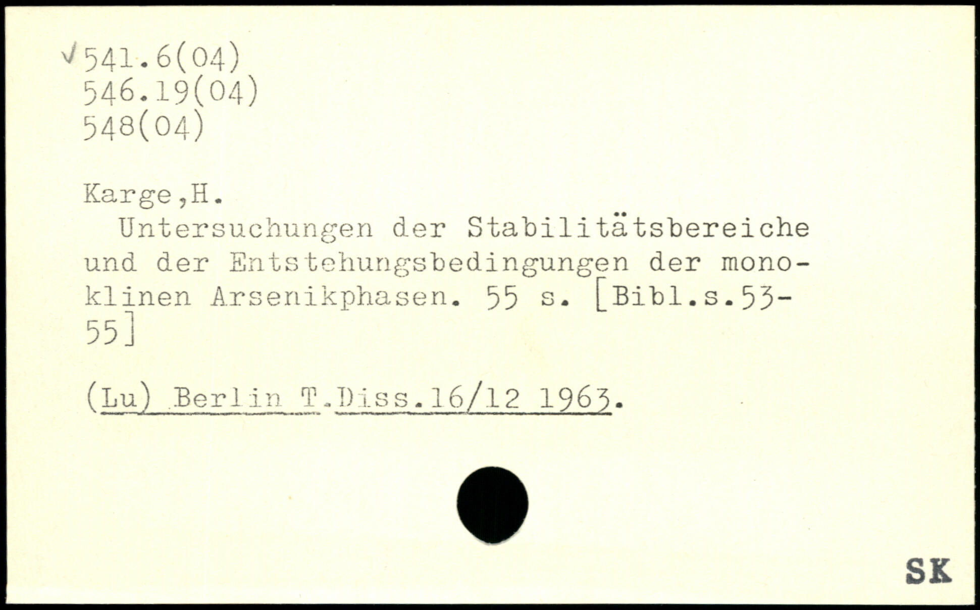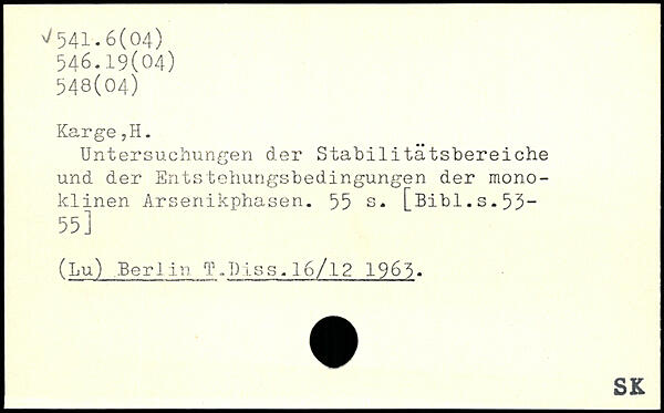 Untersuchungen der Stabilitätsbereiche und der Entstehungsbedingungen der monoklinen Arsenikphasen.