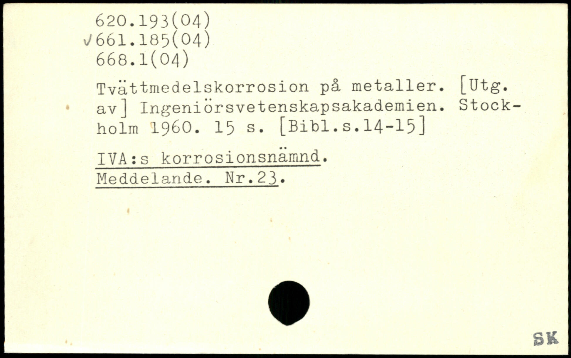 Tvättmedelskorrosion på metaller. [Utg. av] Ingeniorsvetenskapsakademien.