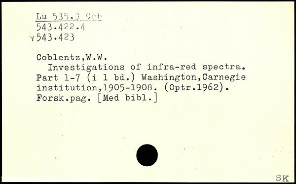 Investigations of infra-red spectra. Part 1-7 (i 1 bd.)