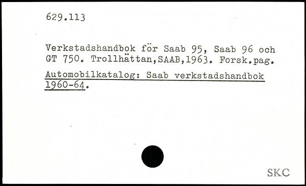 Verkstadshandbok för Saab 95, Saab 96 och GT 75O.
