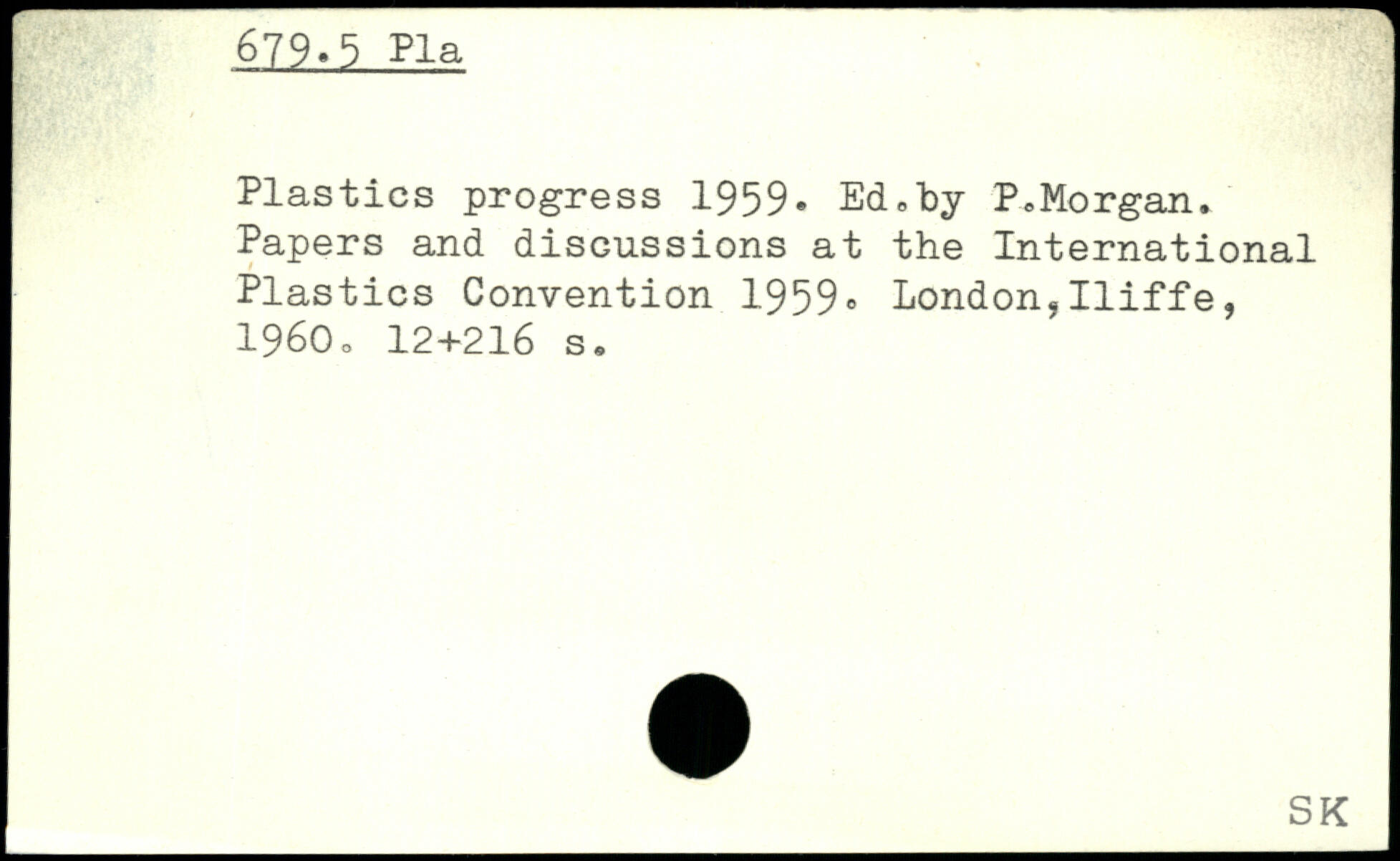 Plastics progress 1959. Ed.by P.Morgan. Papers and discussions at the International Plastics Convention 1959