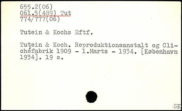 Tutein å Kochs Eftf. Tutein & Koch. Reproduktionsanstalt og Clichéfabrik 1909 - 1.Marts - 1934.