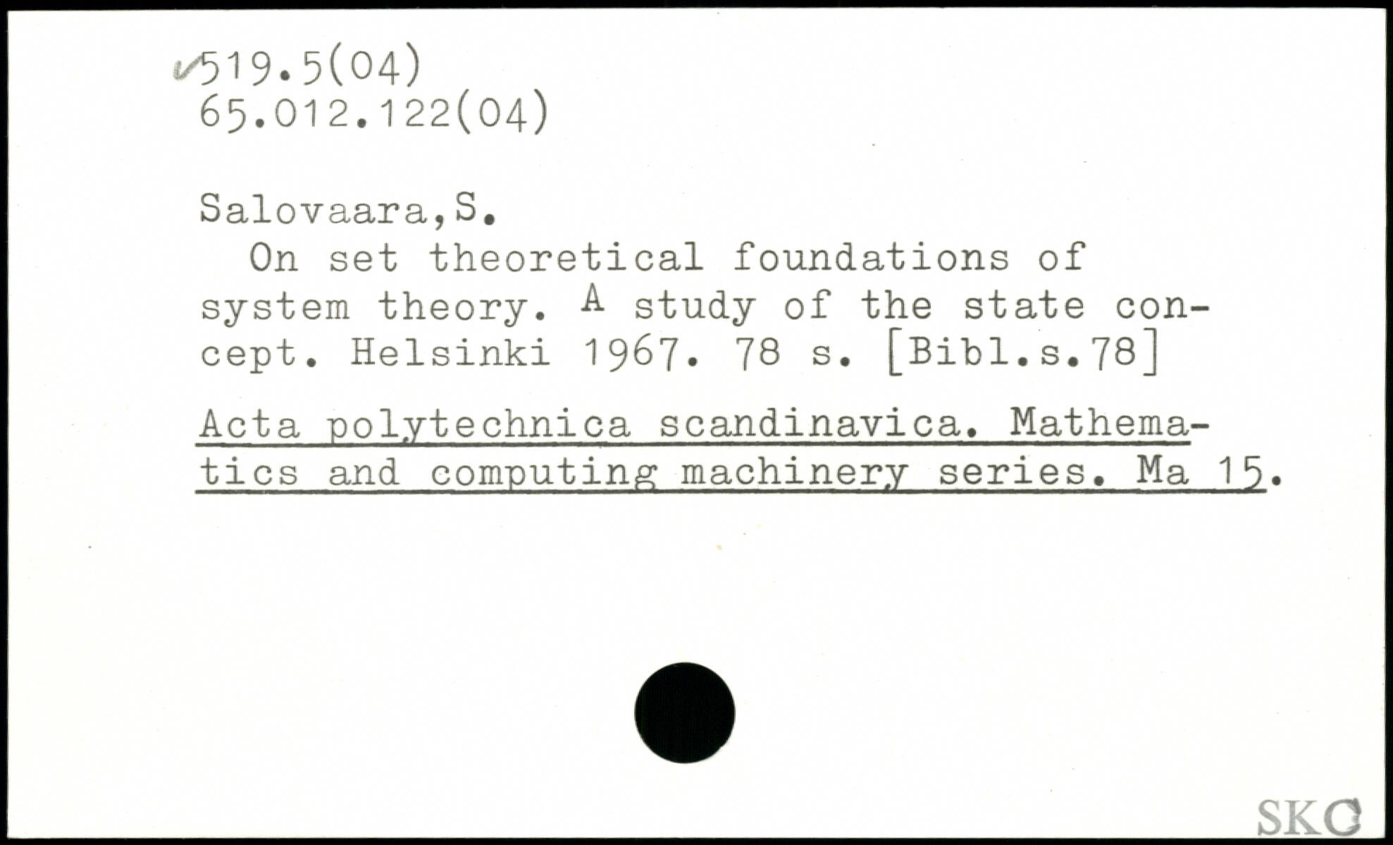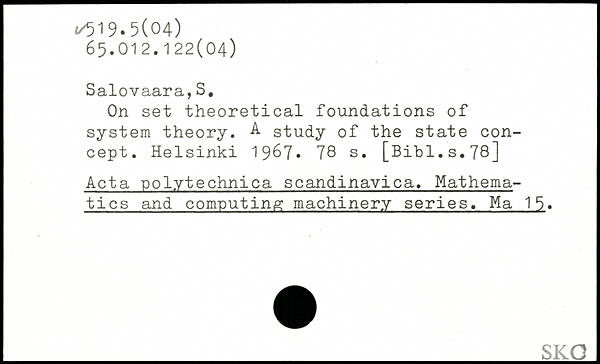 On set theoretical foundations of system theory. A study of the state concept. Helsinki 19^7