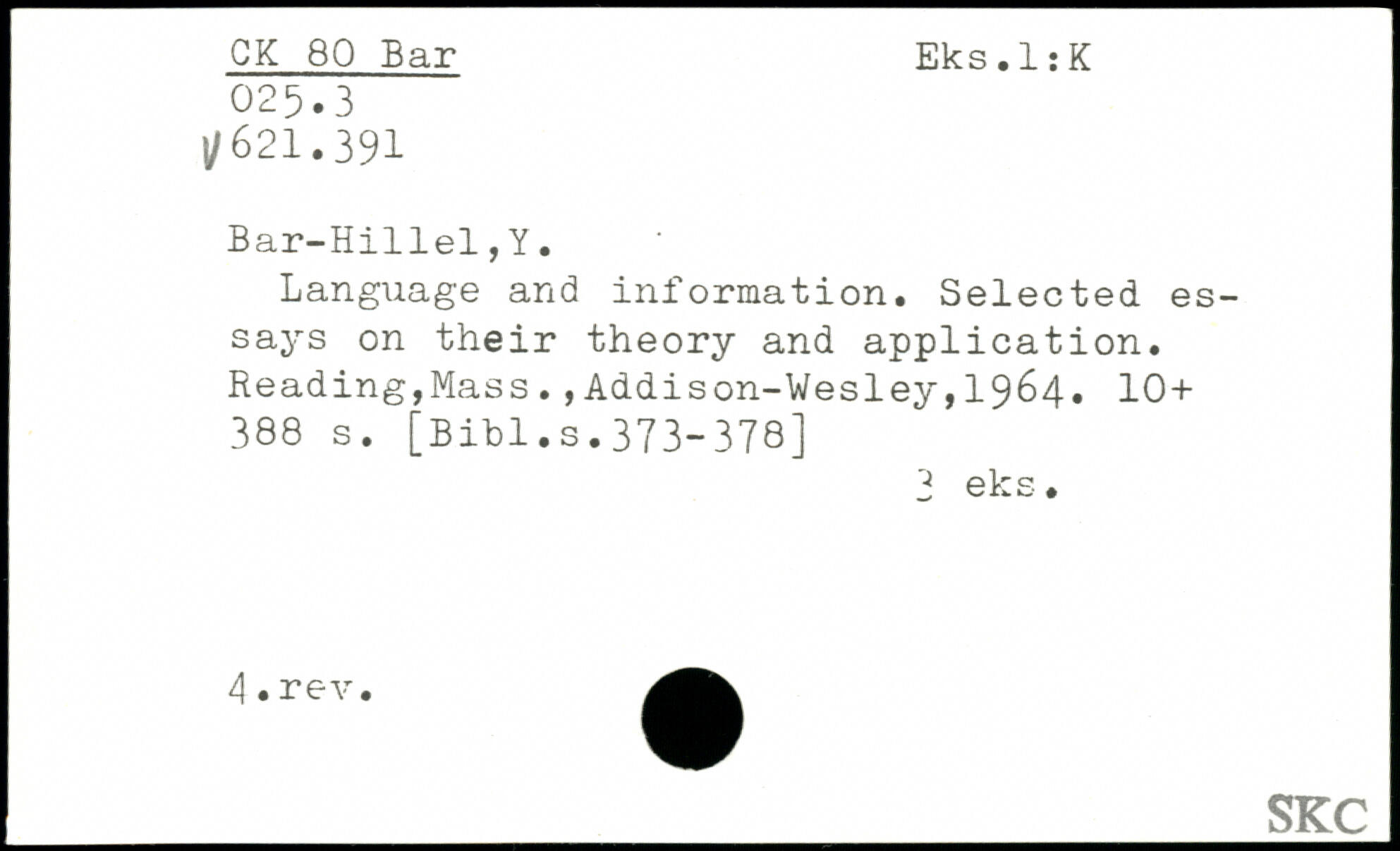 UDK: 80 Bar, 025.3