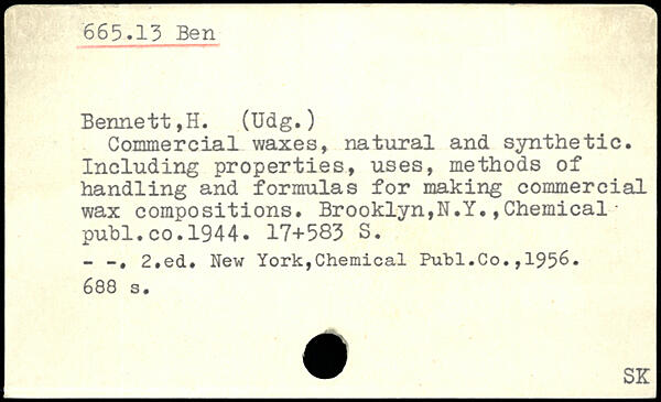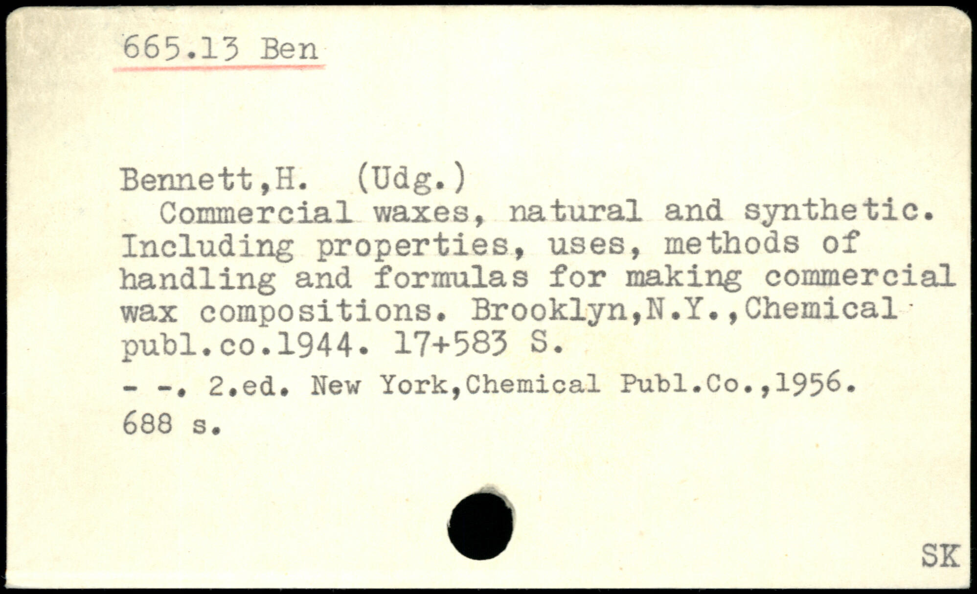 Commercial waxes, natural and synthetic. Including properties, uses, methods of handling and formulas for making commercial wax compositions. Brooklyn,N.Y.,Chemical. publ.co.1944.