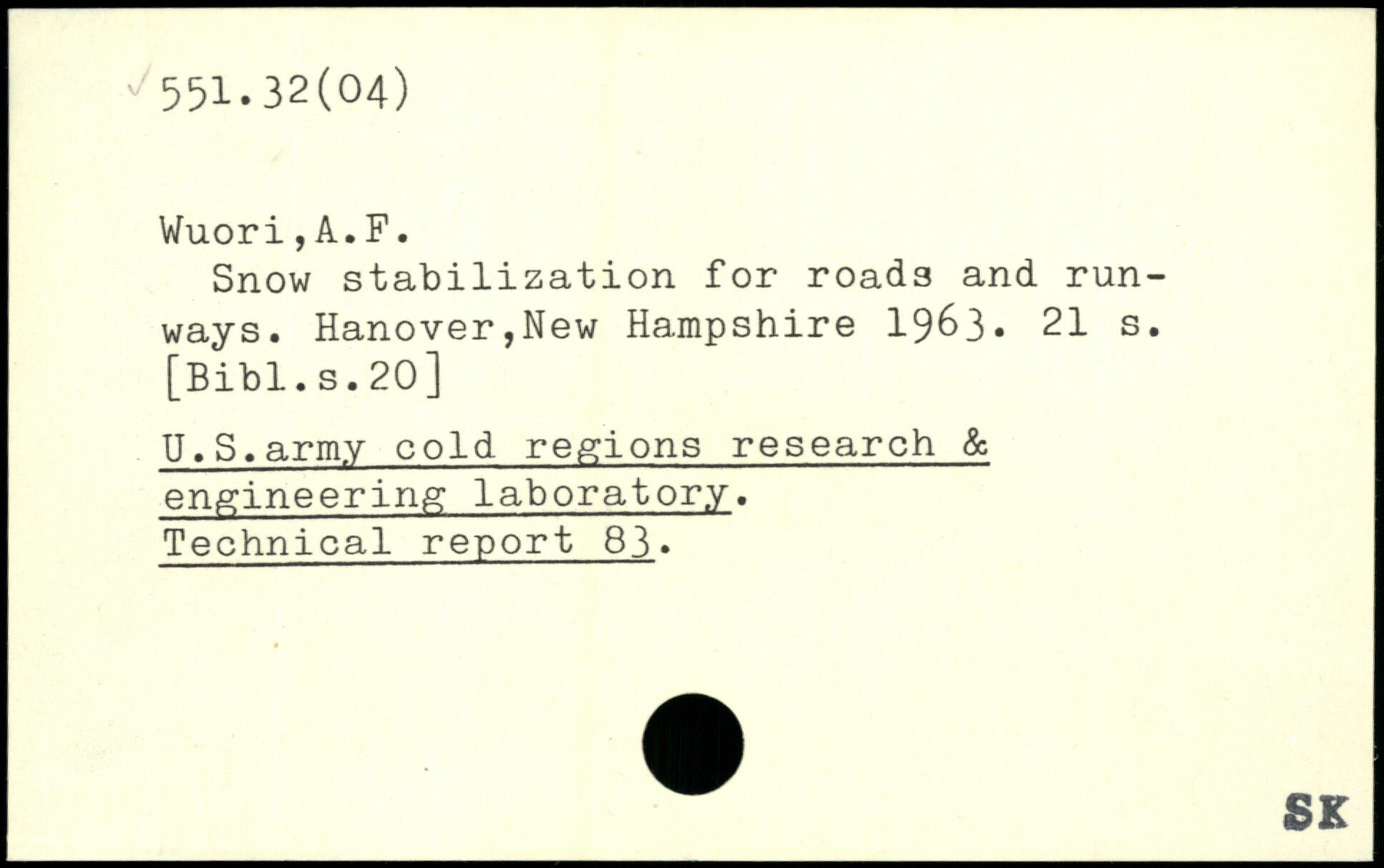 Snow stabilization for roads and runways. Hanover,New Hampshire 1963.