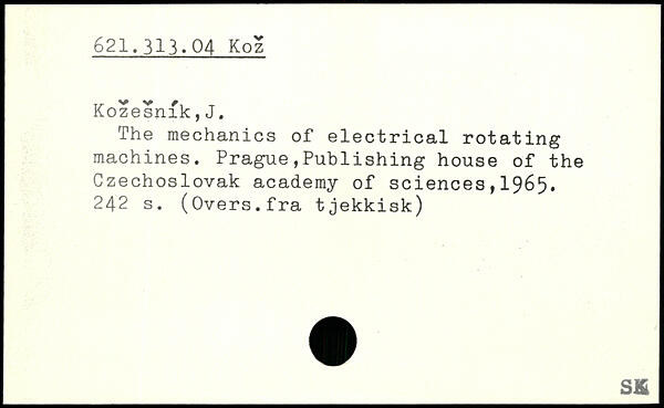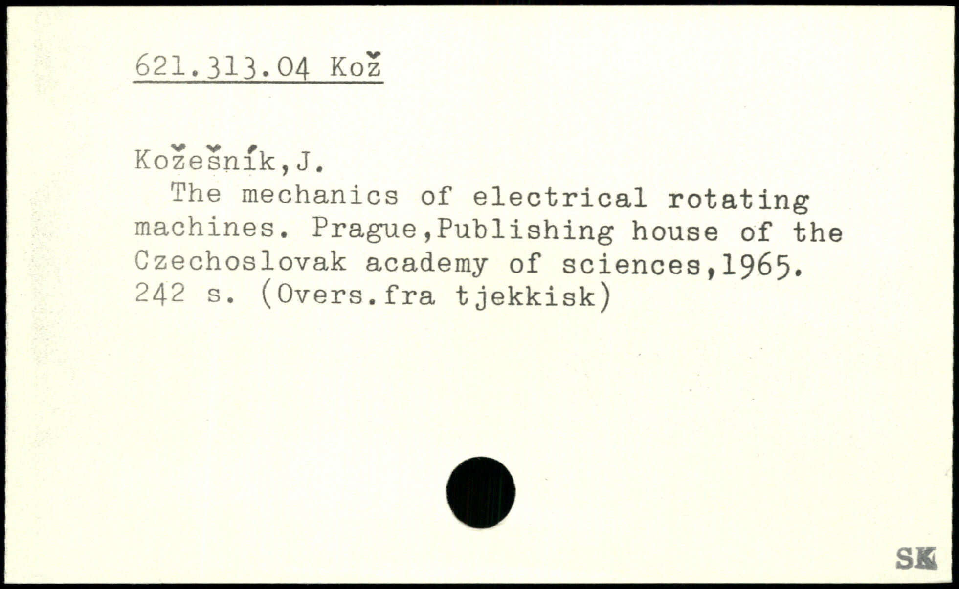 The mechanics of electrical rotating machines. Prague,Publishing house of the Czechoslovak academy of sciences,1965.