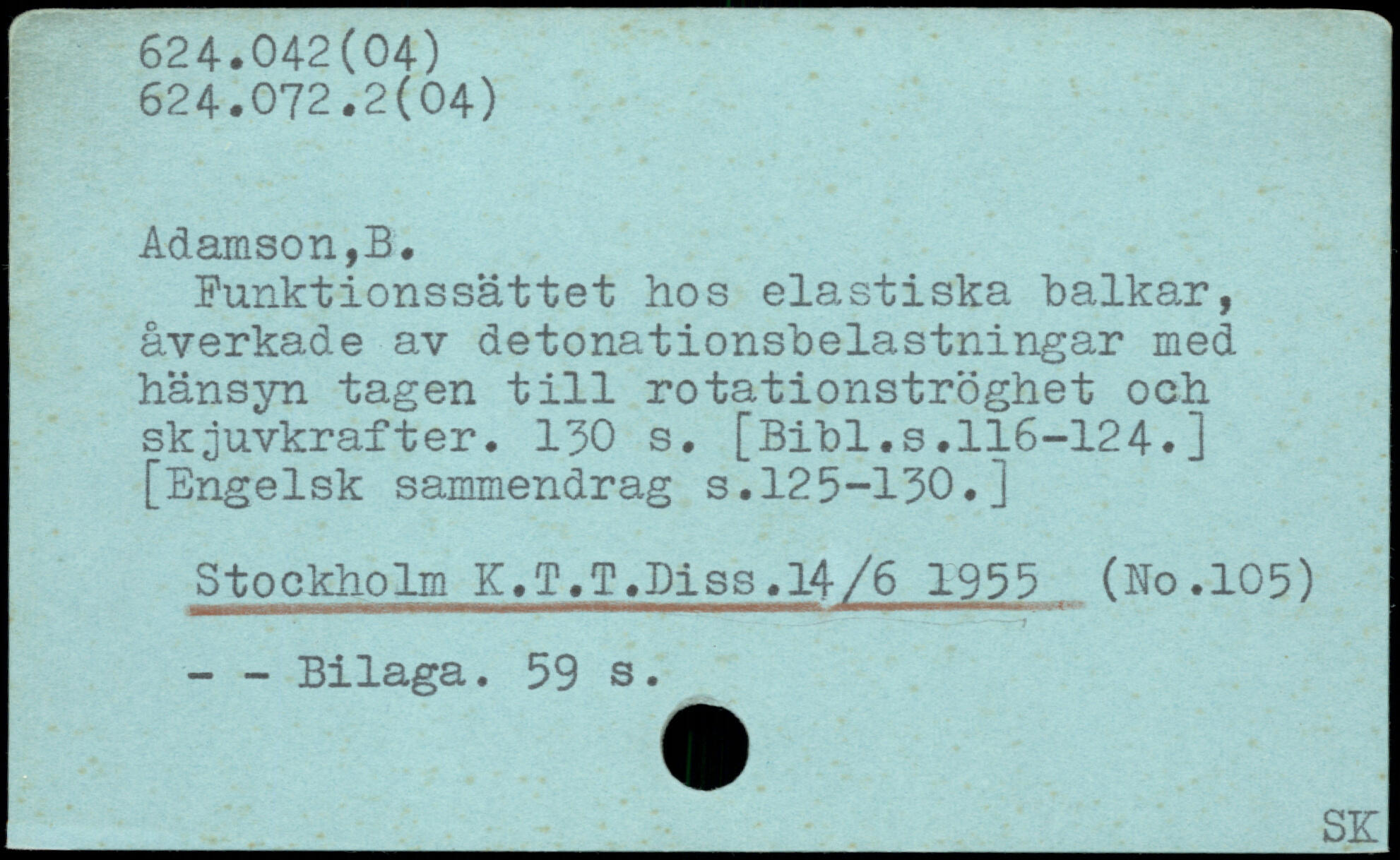 Funktionssättet hos elastiska balkar, åverkade av detonationsbelastningar med hänsyn tagen till rotationströghet och sk^uvkrafter.