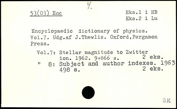 Eks.2 i Lu Encyclopaedic dictionary of physics. V0I.7. Udg.af J.Thewlis. Oxford,Pergamon Press.