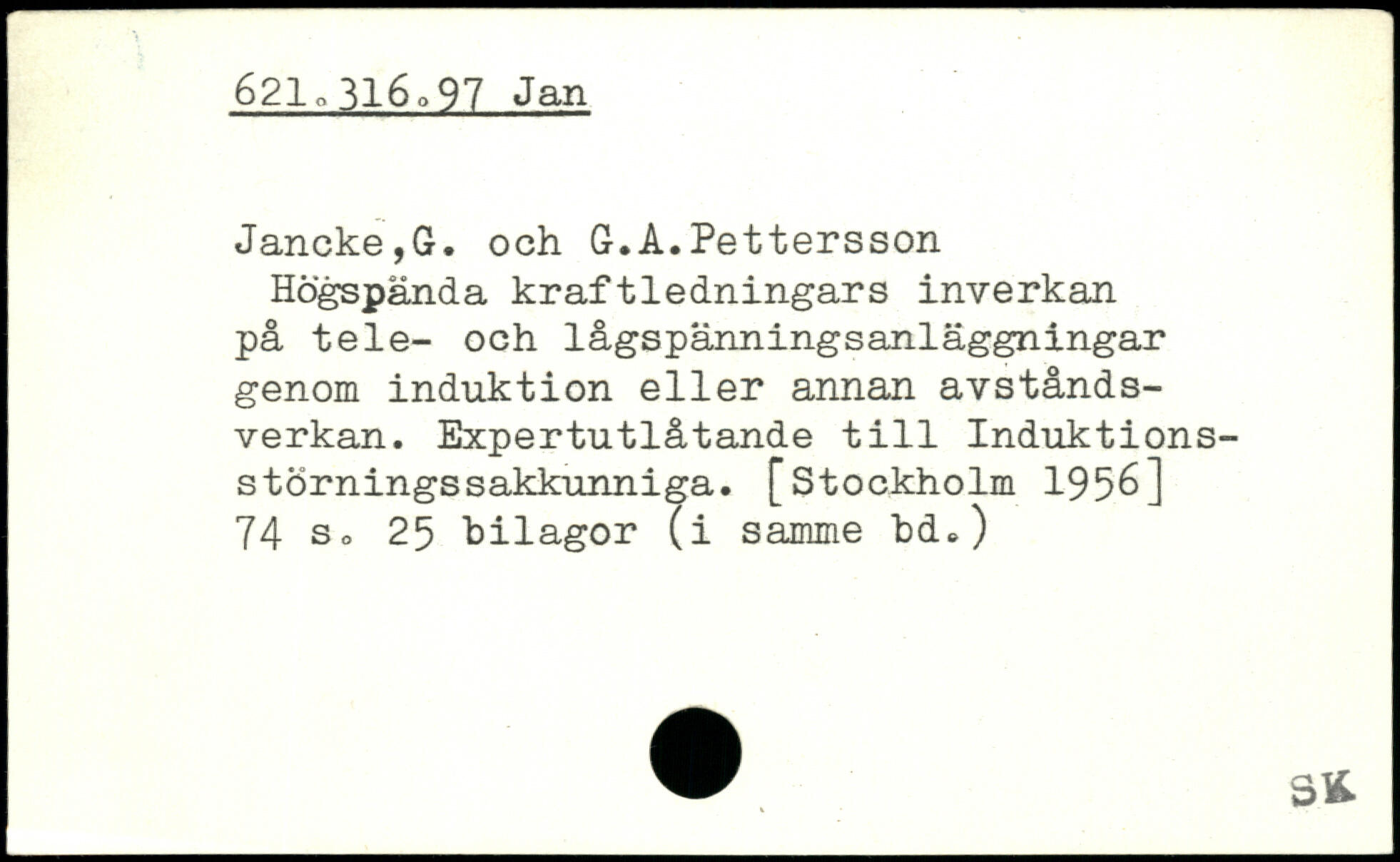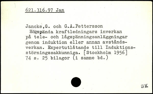 Jancke,G. och G.Å.Pettersson Högspända kraftledningars inverkan på tele- och lågspänningsanläggningar genom induktion eller annan avstånds-verkan. Expertutlåtande till Induktions-störningssakkunniga.