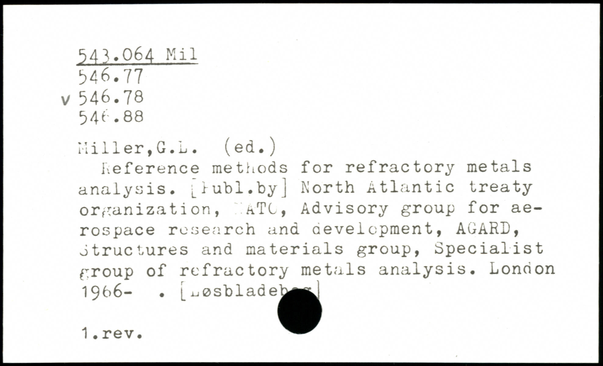 Reference methods for refractory metals analysis. Llubl.by] North Atlantic treaty organization, aTC, Advisory group for aerospace research and development, AGARL, structures and materials group, Specialist group of refractory metals analysis.