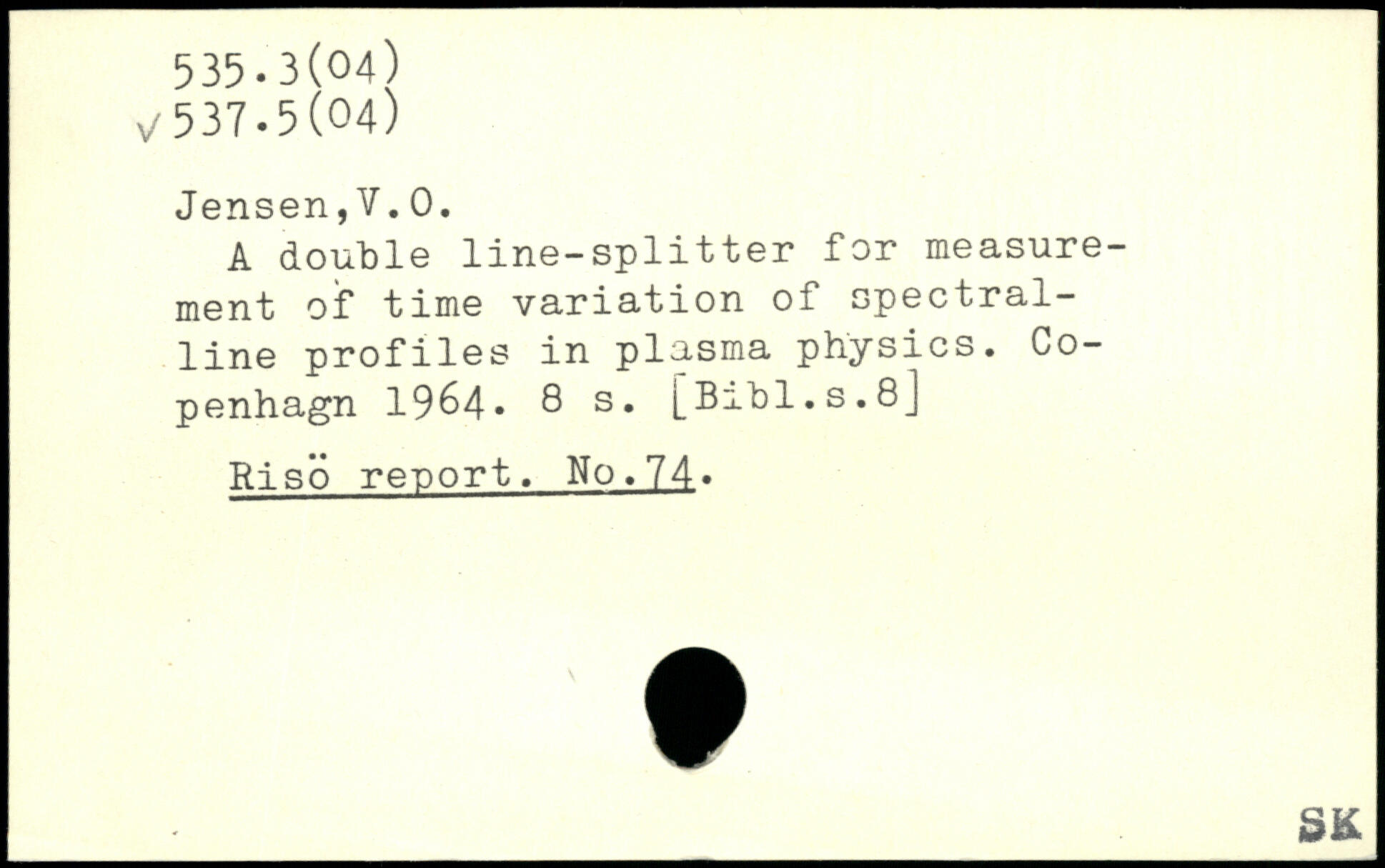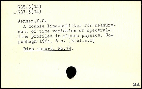 A double line-splitter for measurement of time variation of spectral-line profiles in plasma physics. Co-penhagn 1964-
