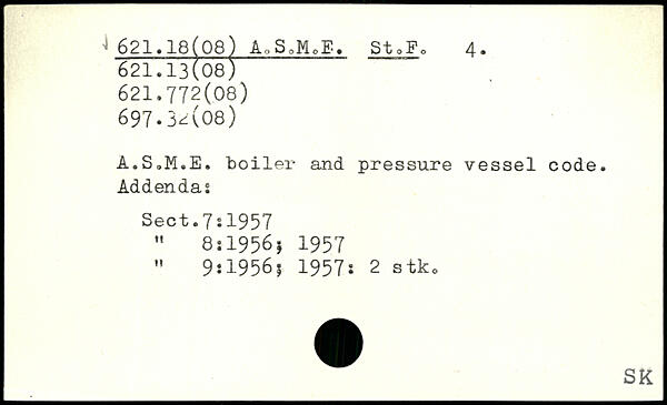 A.S.M.E. toiler and pressure vessel code. Addenda: Sect.7:1957 " 8:19565 1957 " 9:1956? 1957: