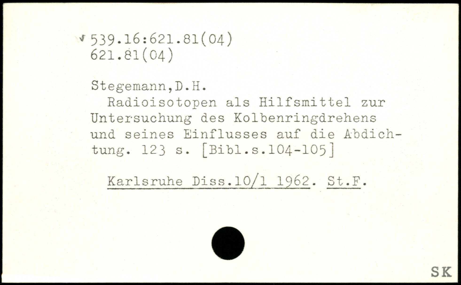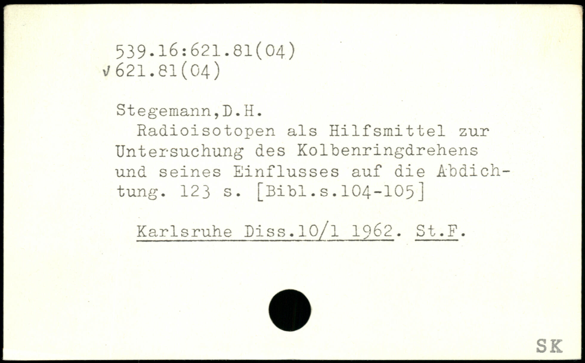 Radioisotopen als Hilfsmittel zur Untersuchung des Kolbenringdrehens und seines Einflusses auf die Abdichtung.