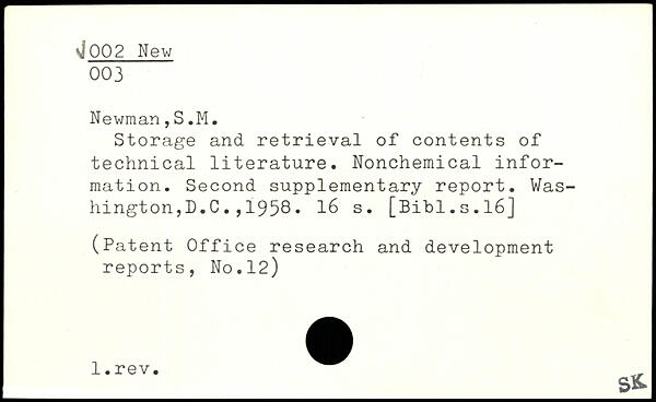 Storage and retrieval of contents of technical literature. Nonchemical information. Second supplementary report.