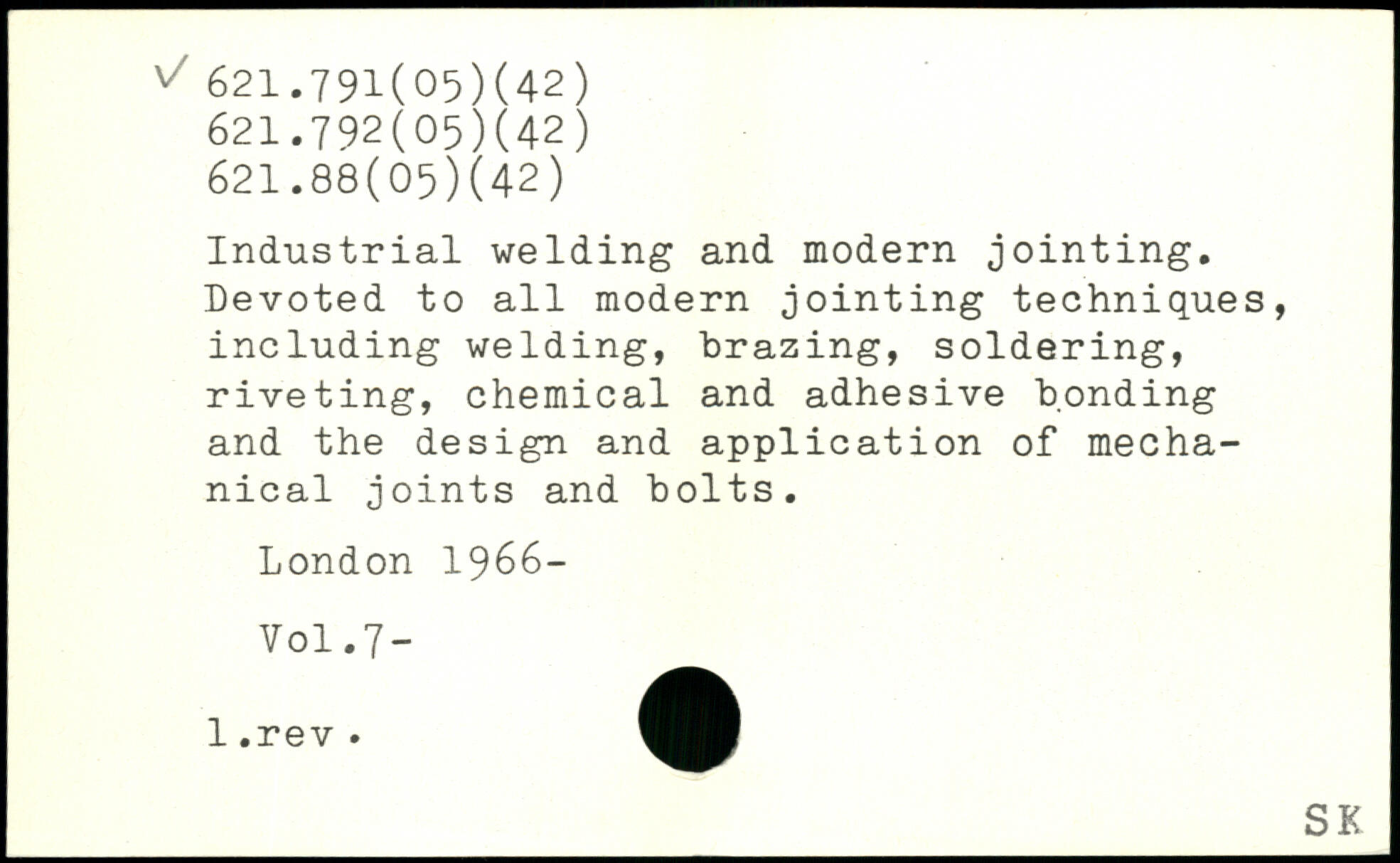 Industrial welding and modern jointing. Devoted to all modern jointing techniques, including welding, brazing, soldering, riveting, chemical and adhesive bonding and the design and application of mechanical joints and bolts.