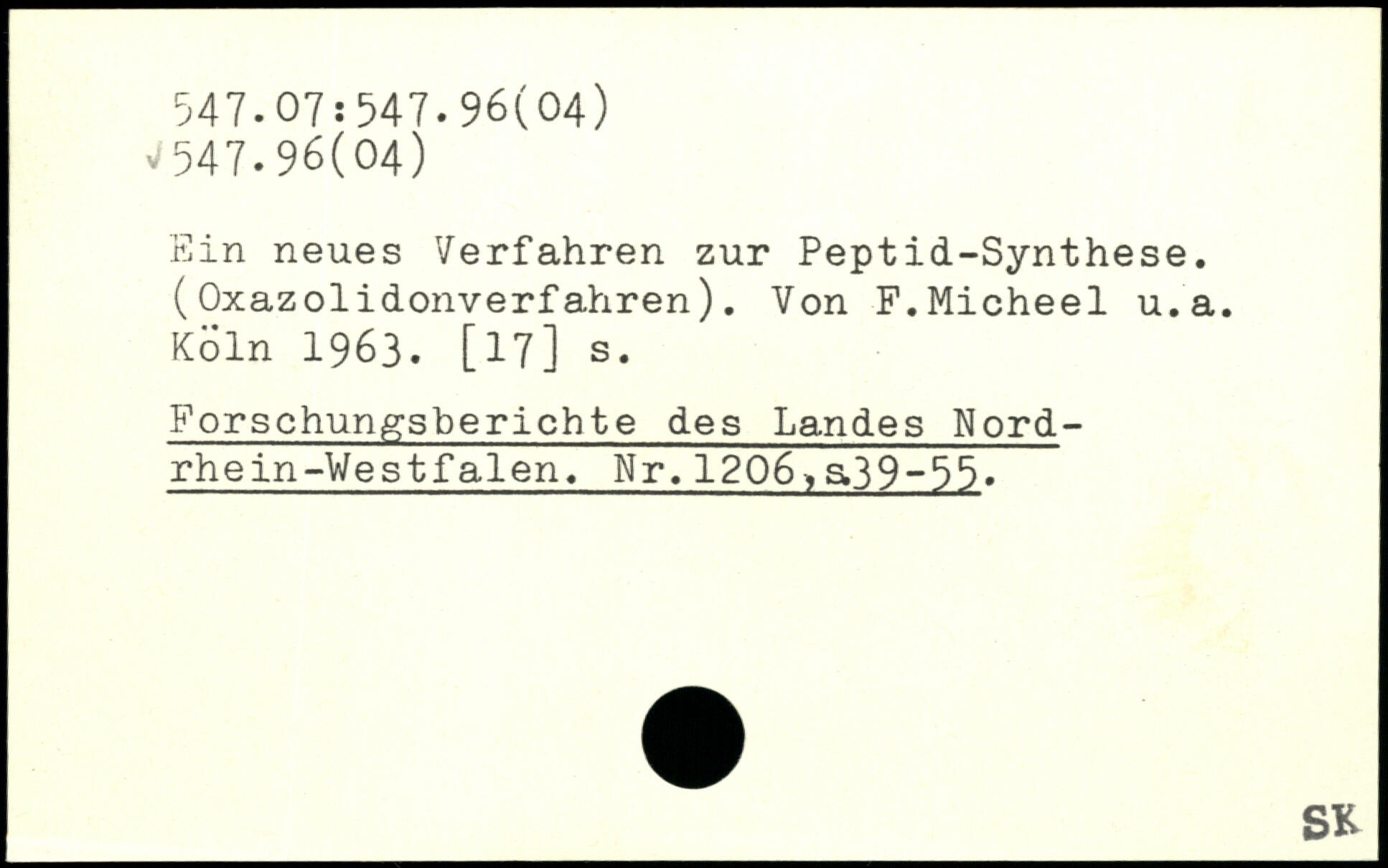 Ein neues Verfahren zur Peptid-Synthese. (Oxazolidonverfahren). Von F.Micheel u.a.