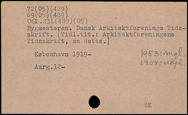 Bygmesteren. Dansk Arkitektforenings Tidsskrift. [Tidl.tit.: Arkitektforeningens Tidsskrift, se dette.]
