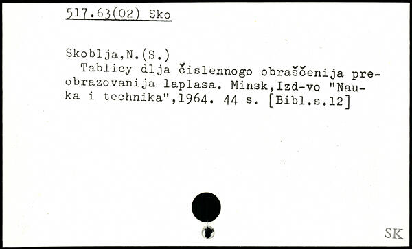 Tablicy dija cislennogo obrascenija pre-obrazovanija laplasa. Minsk,Izd-vo "Nau-ka i technika",1964.