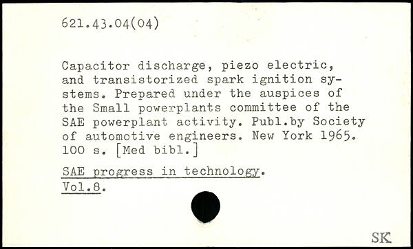 Capacitor discharge, piezo electric, and transistorized spark ignition systems. Prepared under the auspices of the Small powerplants committee of the SAE powerplant. activity.