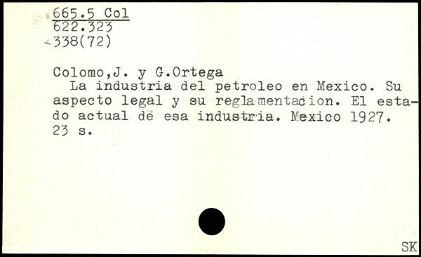 Colomo,J. y G.Ortega La industria del petroleo en Mexico. Su aspecto legal y su regiamentac ion. El esta-do actual de esa industria. Mexico 1927.