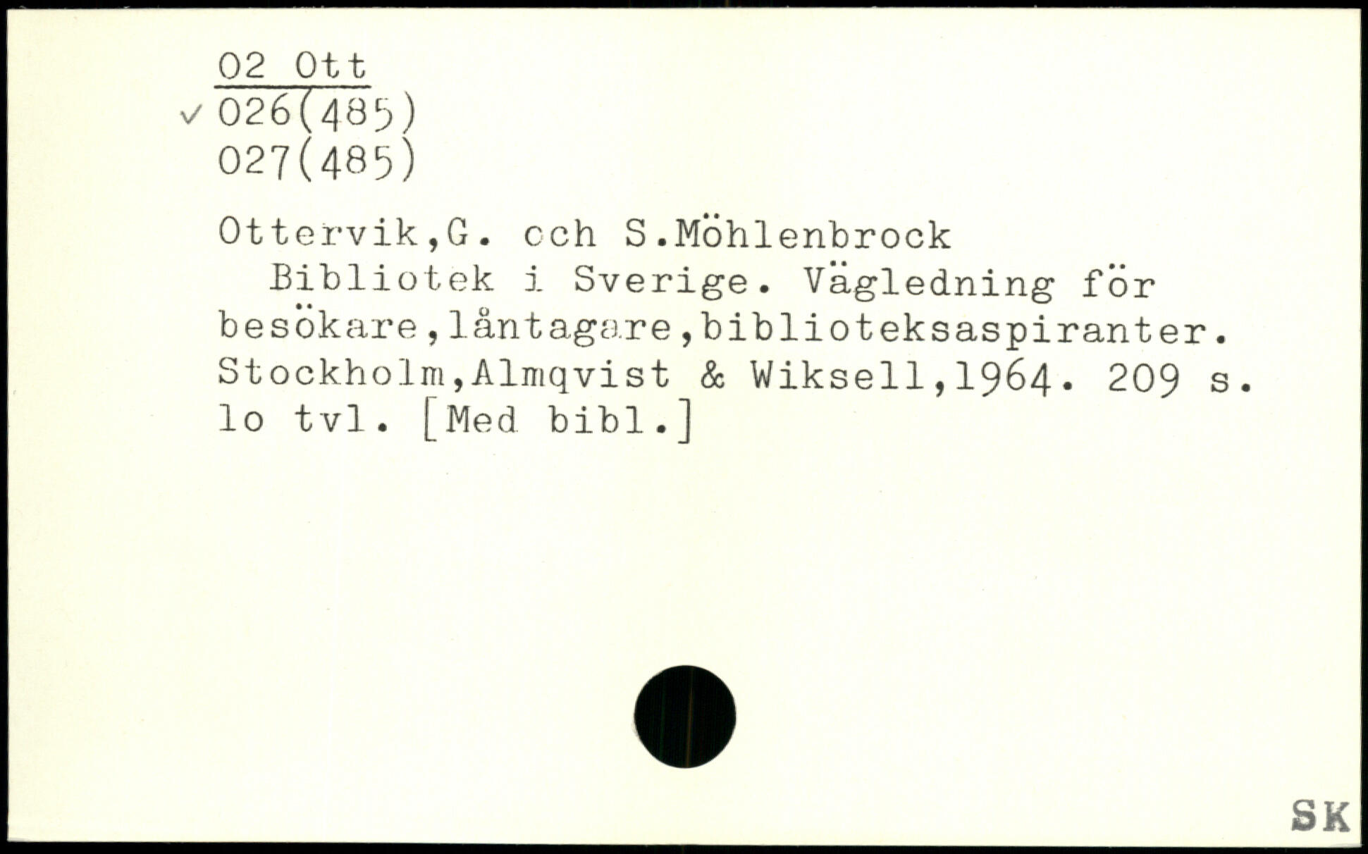Ottervik,G. cch S.Möhlenbrock Bibliotek i Sverige. Vagledning for besökare,låntagare,biblioteksaspiranter.