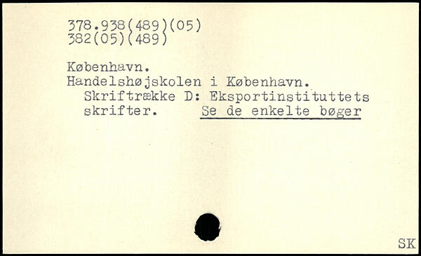 Handelshøjskolen i København. Skriftrække D: Eksportinstituttets skrifter. Se de enkelte bøger