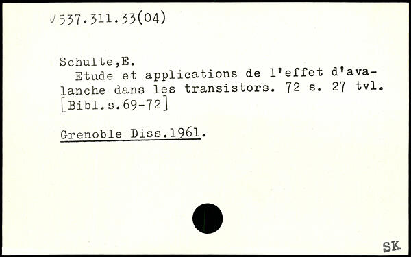 Etude et applications de l'effet d'ava-lanche dans les transistors.