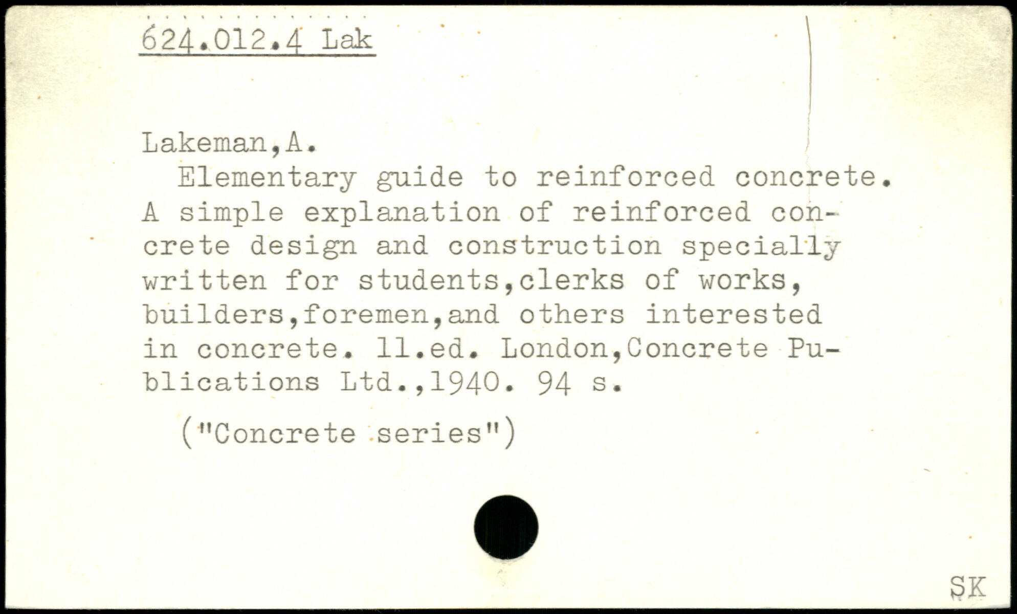Elementary guide to reinforced concrete. A simple explanation of reinforced concrete design and construction specially written for students,clerks of works, “builders,foremen,and others interested in concrete.