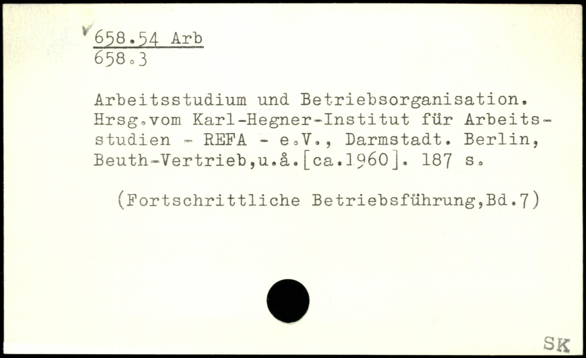 Arbeitsstudium und Betriebsorganisation, Hrsgsvom Karl-Hegner-Institut für Arbeitsstudien - REFA - e,V., Darmstadt. Berlin, Beuth-Vertrieb,u.a.[ca.19^0].