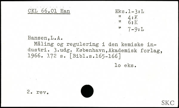 Måling og regulering i den kemiske industri.